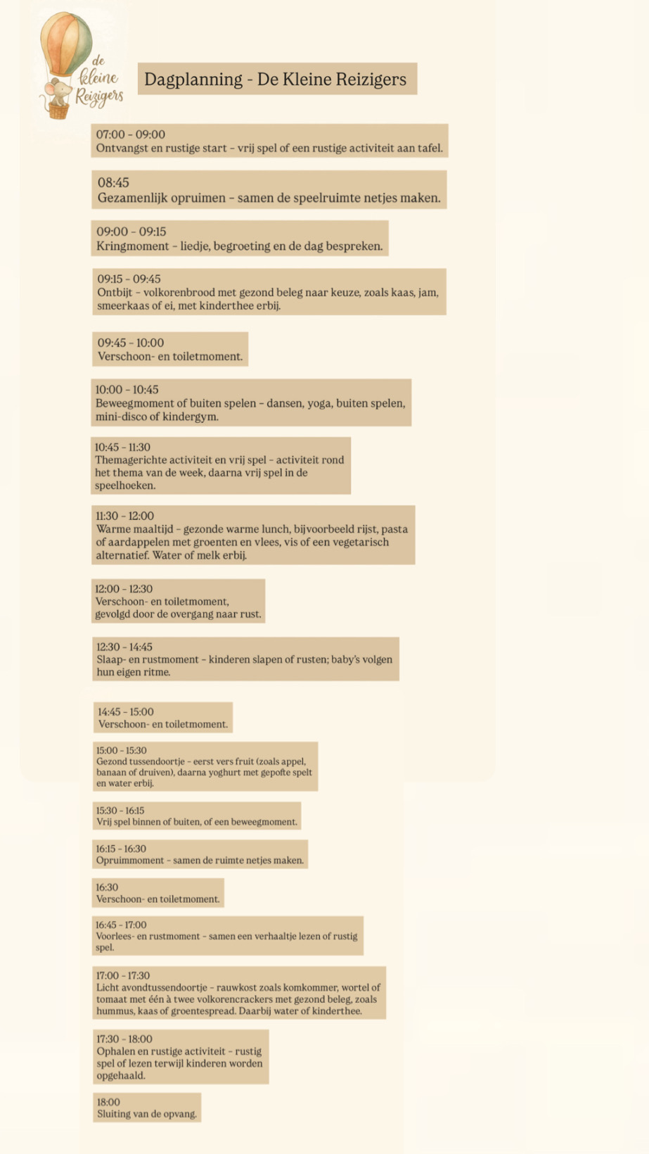 Veiligheid en geborgenheid zijn de basis. Kinderen krijgen een vaste gezicht, duidelijke regels en een voorspelbare dagindeling.